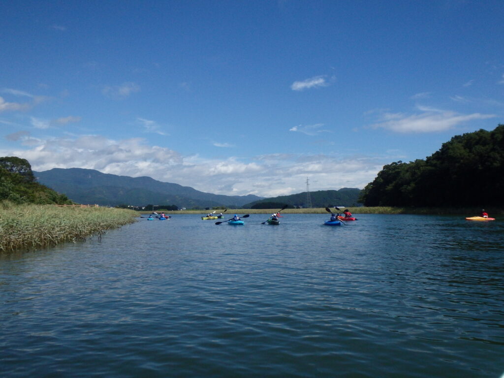 こばと児童クラブの皆さんとカヌー体験② 令和3年8月26日(木) 今日も友内川広場を基地としてカヌー体験を行いました。今日も絶好のカヌー日和。カヌーが初めてという子ども達がほとんどでしたが、乗り始めるとすぐに慣れて、友達同士で競争を始めたり、ゴミを見つけて拾ってくれたりと思い思いに楽しんでくれていました。北川に出て、大岩にカヌーをとめて川遊びも満喫しました。 関連記事: ご家族で来館 みんなでカステラづくり 延岡小学校4年生の皆さんと大瀬川の水生生物調査 東海幼稚園年長のみなさんが来館